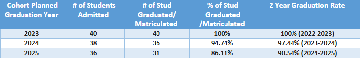 The program graduates will have a two-year average ultimate licensure exam pass rate of greater than 90%.